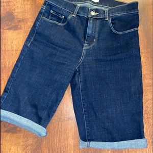 In new condition , cute for the summer and can be worn cuffed on the legs (shown cuffed and uncuffed). Sits mid rise around the waist