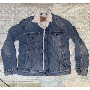Levi Denim Jean Trucker Jacket Men Size Small Type 3 Medium Blue Wash Sherpa