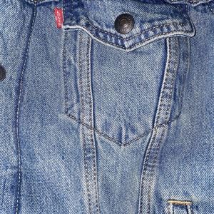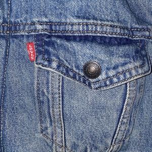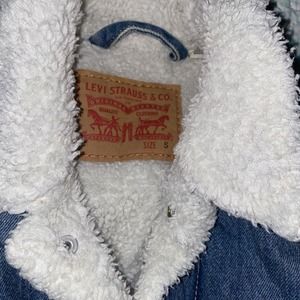 Elevate your style with this Levi's Trucker jacket in a medium blue wash. The denim jacket features a spread collar and snap closure, making it perfect for both casual and travel occasions. The quilted accents and sherpa insulation material will keep you warm during the fall and winter seasons. The jacket is made of 100% cotton and is machine washable for easy care. The jacket is a size small and has a regular fit, making it a perfect addition to any wardrobe.