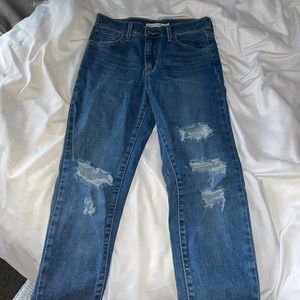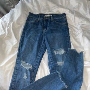 Ripped Levi’s high rise super flattering! Frayed legs and classic Levi blue Jean color! Never worn