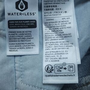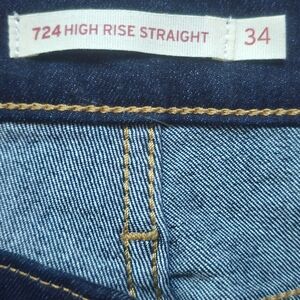 Dark wash, Levi's high-rise jeans with a straight leg.
