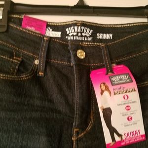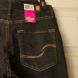 Totally shaping,dark blue, super comfy. Never worn, tan design on pockets