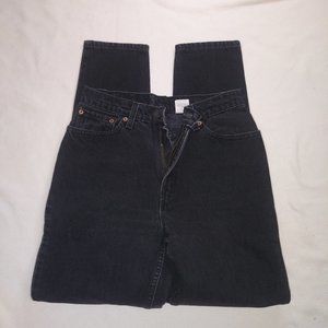 Black Levi jean, Straight leg, High rise waist. Made in the USA. no stretch , Size 9m, Waist is 27 inches, hips are 36 inches and the inseam is 29 inches. I have had these jeans for probably 38 years only wore them a few times. They are in excellent condition. They do zip and have one button.