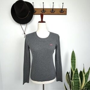 Levi Long Sleeve Heavyweight Ribbed Sweater. Grey Red Tab. Small