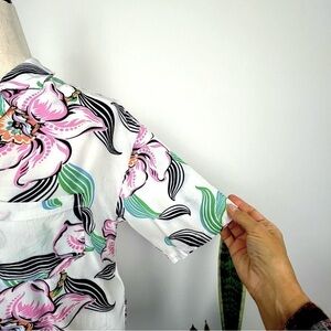 Levi Mahina Tropical Print. Short Sleeve Button Down. Pink White. XS