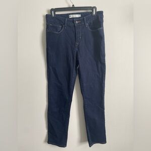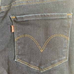 These Levi’s are a great addition to your closet. They are dark wash skinny jeans that are mid rise.