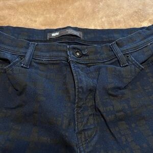 These jeans are in excellent condition with no visible ware on them. The fabric is study and has a pattern that is sutble and fun. The tag states that these jeans are W31 and L32. F