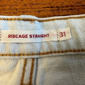 Levi' Premium Ribcage Straight Whitewashed Denim Frayed Shorts / 31