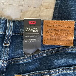Stylish high waisted bootcut jeans by Levi's. Classic & crisp blue hue. Perfect for versatile wear.