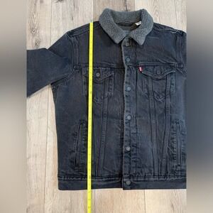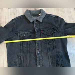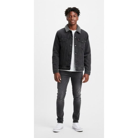 Keywords: Levi's, Sherpa Lined, Denim Jacket, Trucker Jacket, Menswear, Winter Jacket, Fall Fashion, Outerwear, Casual Jacket, Iconic Style, Warm Coat, Black Denim, Comfortable