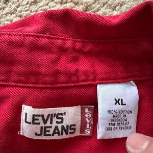 Levi Shirt Mens XL Button Up Long Sleeve Metal Buttons Vtg Red Point Collar