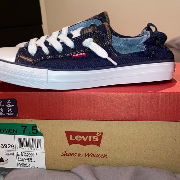 These are denim jean levi tennis shoes , they are a size 7.5 in women .