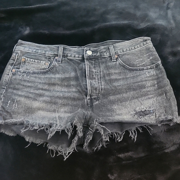 501 Levi's premium Shorts. Purchased brand new and worn for a whole summer. They longer fit me and are my favorite Shorts. They do sit somewhat high wasited and have a small fringe on the edges of the Shorts. Currently down two pant sizes so these are constantly falling off my booty. I would love for someone to love these as much as I did because it feels impossible to let go.