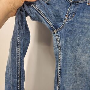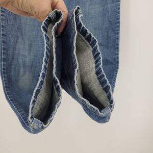 Front zipper closure. Medium to light wash. Gently worn no holes or heel drag