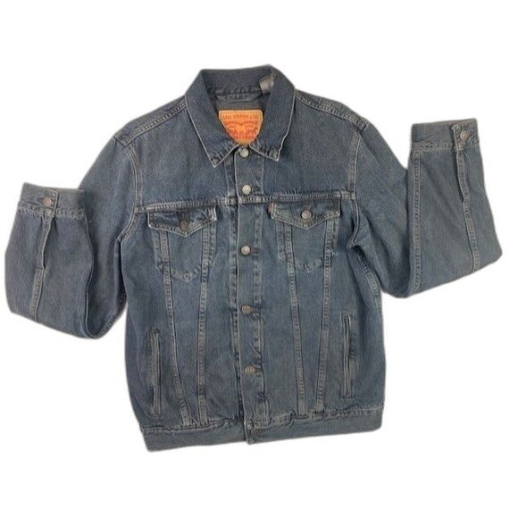 Levi Size M Mens Denim Jean Jacket Trucker Cotton Black