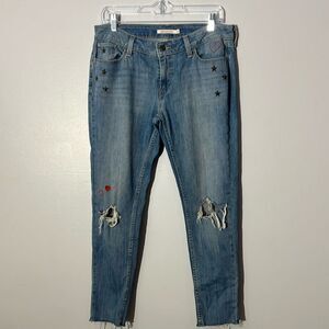 Levi Strauss 535 Super Skinny Distressed Embroidered Hearts Stud Stars Jeans 29