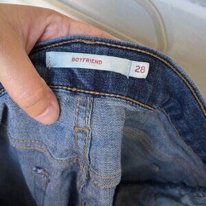 58% cotton. 26% viscose. 14% polyester. 2% elastane. Size 28.