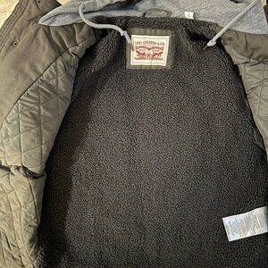 Levi Strauss Brown Sherpa Lined Hooded Trucker Jacket Size Small