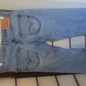 Classic vintage men's Levi Strauss & Co. light wash frayed blue jeans with a timeless look. Lots of life left to these workaholic jeans! Perfect for casual wear.