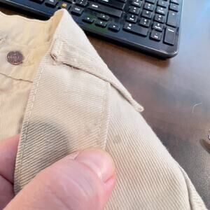 In Very Good Pre-Owned Condition Please see the 4th and 5th photos where I am showing some faint staining on the front right leg. Not very noticeable. faint staining on the back waistband in 5th photo