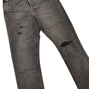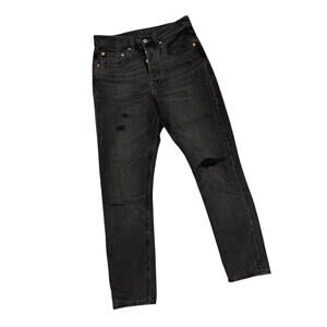 Levi Strauss &Co Black 501 Jeans Skinny ButtonFly Premium Denim Distressed 26x28