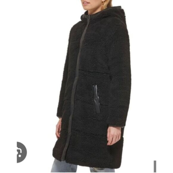 Levi Strauss & Co Black Faux Shearling Quilted Parka Size Large