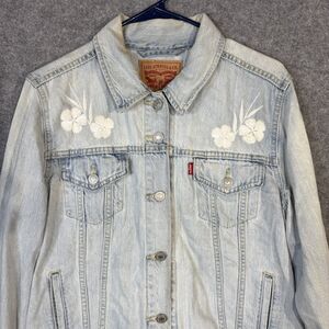 Levi Strauss & Co. Girl's Light Wash Jean Jacket with White Flower Embroidery 100% Cotton Size XL
