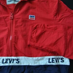 Levi Strauss & Co. Small Red White & Blue Hooded Quarter Zip Windbreaker Jacket