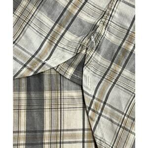 Capture rugged Americana style with this Levi Strauss & Co. Two Horse Brand western pearl snap shirt in earthy beige, gray, & brown plaid. Crafted from a durable cotton blend, this short sleeve button down delivers authentic cowboy charm with modern comfort. Detailed with dual snap pockets, pointed yoke, & classic snap closures, it’s perfect for rodeos, country concerts, or relaxed weekends. The timeless plaid pattern pairs effortlessly with jeans, boots, or a denim jacket—ideal for men who love vintage western, ranchwear, or country-core aesthetics.