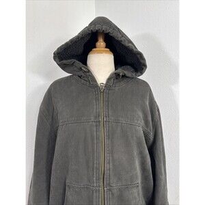 Levi Strauss Jacket Mens Extra Large Gray Canvas Sherpa Lined Hood Trucker