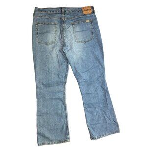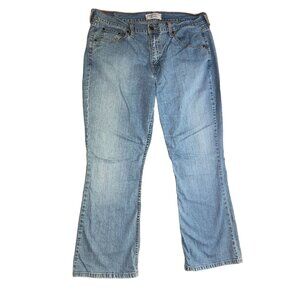 Levi Strauss light blue, bootcut, size 16 short jeans. Made with spandex cotton for superior comfort and flexibility. Distressed finish for a stylish, worn-in look. Perfect for women seeking comfort and style.