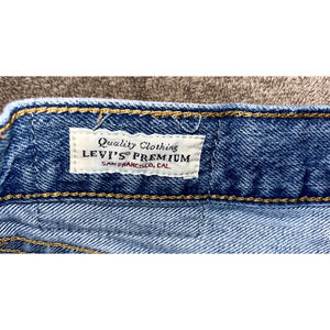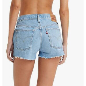 Get ready for summer with these Levi's Premium 501 denim shorts! With a distressed design and button fly closure, these shorts are perfect for a casual, classic American look. Made from comfortable, easy-care cotton material, they feature a 5-pocket design and flat front for a sleek finish. These shorts are ideal for any season, whether it's summer, fall or spring. They have a high-rise waist of greater than 10.5 inches and a regular fit. The Levi's logo accents the shorts, adding a touch of style to your outfit. Perfect for any occasion, these shorts are a must-have for any fashion-conscious woman.