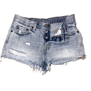 Levi Strauss Levi's Premium 501 Size 27 Button Fly Distressed Denim Jean Shorts