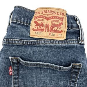 Up for sale is a Levi Strauss Men's 511 Slim Fit Stretch Dark Wash Jeans in size 30 X 32. These jeans are perfect for any stylish man looking for a comfortable and versatile addition to his wardrobe. The dark wash color and straight style make them suitable for any occasion.