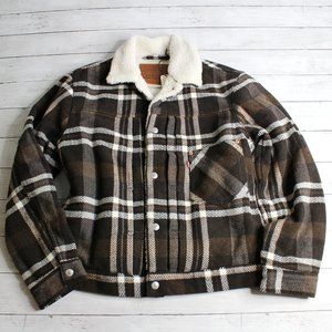 Levi Strauss Men's Plaid Trucker Jacket Size M Wool Blend Sherpa Lined