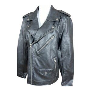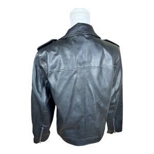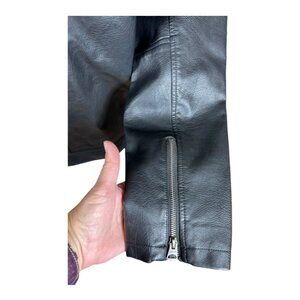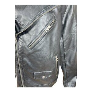 This is a beautiful women's bomber jacket in faux leather. It looks and feels like real leather and has zero flaws or signs of wear.