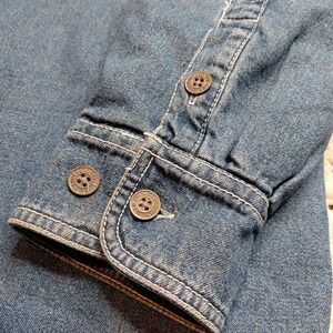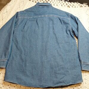 Levi Strauss Shirt Jacket Mens L Blue Denim Flannel Plaid Lined Shacket Quilted