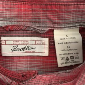 This Levi Strauss men's red plaid long sleeve button-up shirt is made from 100% cotton, making it comfortable and breathable for everyday wear. The shirt features a collared neckline, button closure, and a regular fit, perfect for casual, travel, or workwear occasions. With its easy care instructions and inclusion of pockets, this shirt is a practical and stylish addition to any man's wardrobe. The iconic Levi's brand and red plaid design add a touch of flair to this classic wardrobe staple.