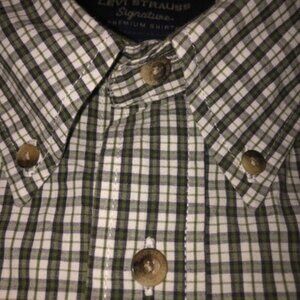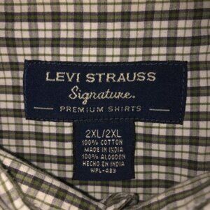 Levi Strauss Signature Green White Plaid Button Up Shirt Mens 2XL Casual