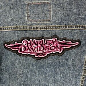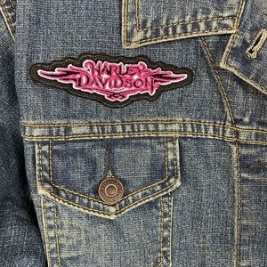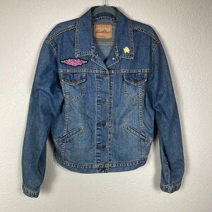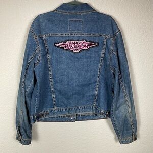 Levi Strauss Signature Levis Harley Davidson Denim Jean Jacket with Patches Womens Sz L