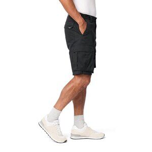 The Levi Strauss Signature Men's Secure Cargo Shorts in size 30 are designed for casual occasions with a mid-rise fit and 10-inch inseam. Made from comfortable cotton fabric, these black shorts feature a classic solid pattern and multiple pockets, including a cargo pocket for added functionality. The easy-care and lightweight design make them ideal for summer, fall, and spring seasons, while the brand's reputation ensures quality and durability in outdoor activities. Machine washable for convenience, these shorts are a stylish and practical choice for men of all sizes.