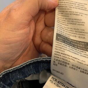 Levi Strauss Signature Medium Dark wash, modern slim, manufactured whiskering on front waist. Pockets front and back, zip fly. Size 8M- W29 L32.