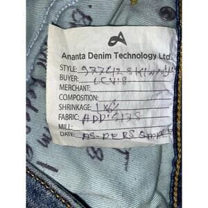 “These jeans appear to be a factory sample or test version based on internal markings and development tags from Ananta Denim Technology (a Levi’s manufacturer). Unique piece not typically found in stores.”