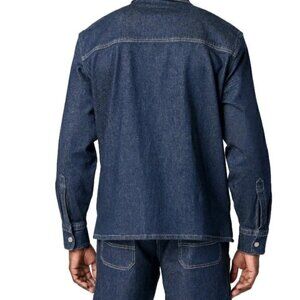 The Levi Strauss Utility Shirt Jacket is approximately in a size Big & Tall XL Pit to Pit 26 *(52) inches and Length shoulder to hem 30.5 inches is a versatile and stylish denim jacket for men. It features a snap closure, side pockets, and a spread collar for a classic look. Made with cotton denim, this jacket is suitable for casual, workwear, and outdoor occasions, making it a practical choice for multiple seasons. The blue color and solid pattern add a modern touch to the Western-inspired design, perfect for a relaxed fit and everyday wear. The Levi Strauss Signature brand ensures quality and style for the contemporary man.