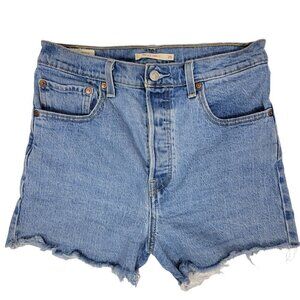 Levi Strauss Women's Lt Wash Raw Hem High-Rise Button Fly Ribcage Shorts Sz 29