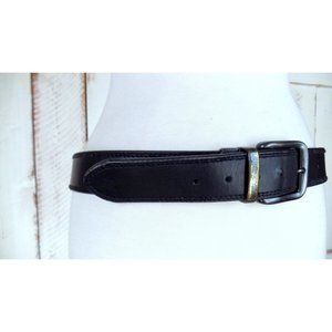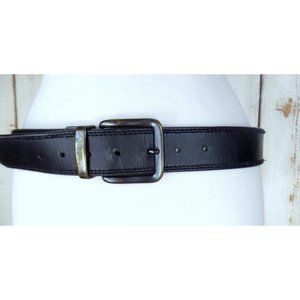 Levi Strauss thick black leather wide belt with distressed buckle / unisex