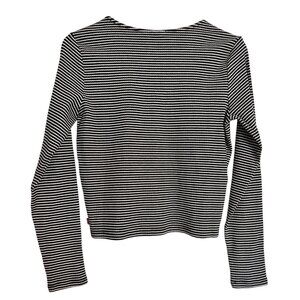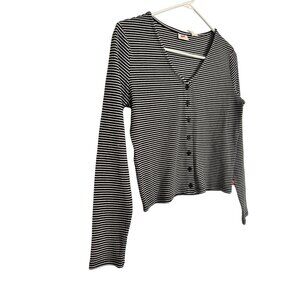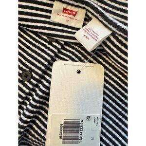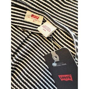 This Levi striped button-up top offers a slim fit and stylish V-neck design, perfect for casual or semi-formal occasions. New with tags, it provides comfort and a modern look for any wardrobe.