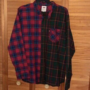 Levi Two Tone Plaid Print Cotton Blend Long Sleeve Button Up Shirt Size XXL