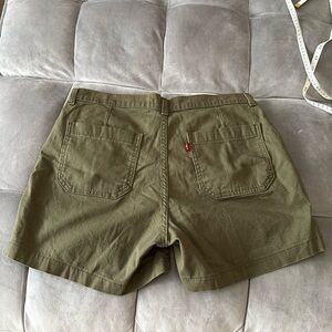 Good condition with minor wear. See photos for details and measurements. Stylish olive green women's shorts perfect for casual outings. Comfortable and versatile for everyday wear.
