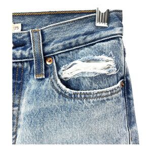 premium levi denim, straight leg style with button fly and classic 5 pockets.